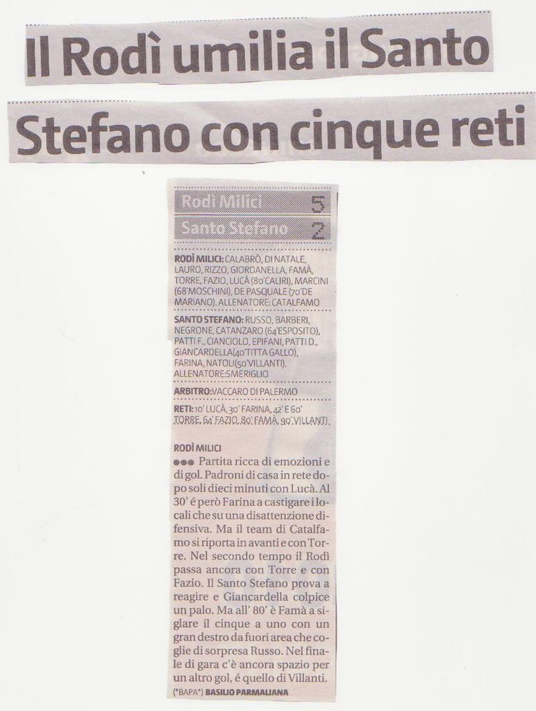ARTICOLI GIORNALI CAMPIONATO 1 CATEGORIA 2009 - 2010
