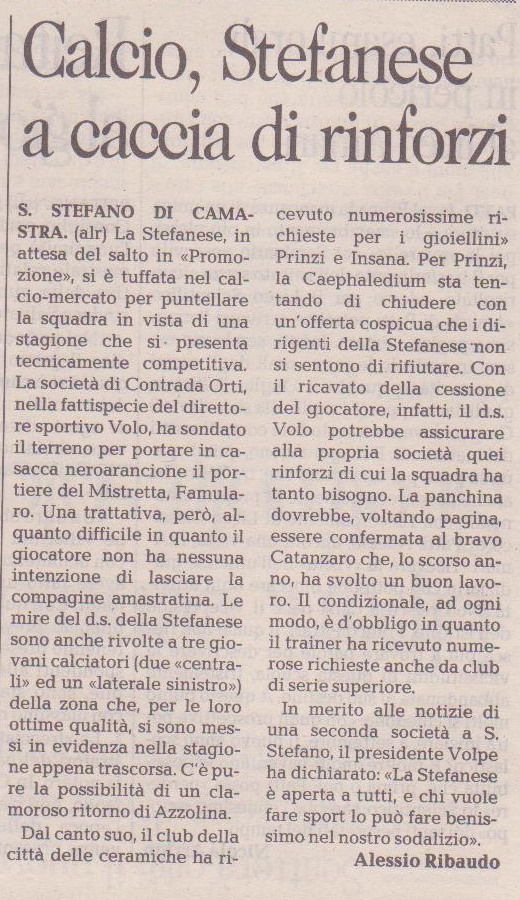 ARTICOLI GIORNALI DEI CORRISPONDENTI STEFANESI