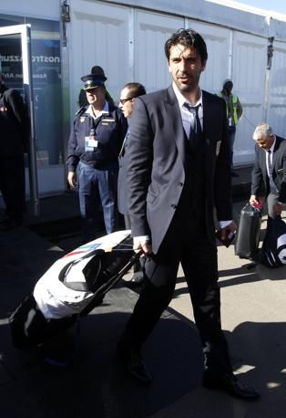Italy's goalkeeper Gianluigi Buffon walks out of passport control after the team's arrival at Johannesburg's O.R. Tambo airport June 9, 2010. The 2010 Soccer World Cup kicks off on June 11. REUTERS/Alessandro Bianchi (SOUTH AFRICA - Tags: SPORT SOCCER WORLD CUP)