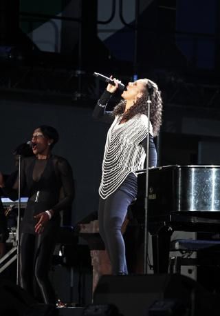 epa02195738 US singer Alicia Keys performs during the FIFA World Cup Kickoff concert at Orlando Stadium in Soweto, Johannesburg, South Africa, 10 June 2010. The FIFA 2010 World Cup is due to kick off in Johannesburg on 11 June. EPA/JON HRUSA
