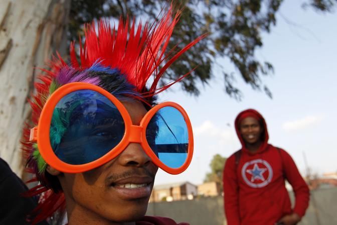 A South African soccer fan poses for picture during the opening concert for the soccer World Cup at Orlando stadium in Soweto, South Africa, Thursday, June 10, 2010. The Soccer World Cup is to be kicked off on Friday, June 11. (AP Photo/Hassan Ammar)
