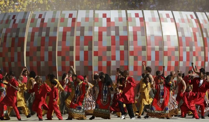 Dancers perform during the opening ceremony before the World Cup group A soccer match between South Africa and Mexico at Soccer City in Johannesburg, South Africa, on Friday, June 11, 2010. (AP Photo/Themba Hadebe)