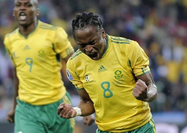 South Africa's Siphiwe Tshabalala celebrates after scoring the opening goal during the World Cup group A soccer match between South Africa and Mexico at Soccer City in Johannesburg, South Africa, Friday, June 11, 2010. (AP Photo/Martin Meissner)
