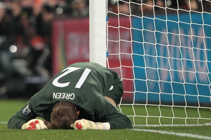 ©Jonathan Moscrop - LaPresse 12 06 2010 Rustenburg ( Sud Africa ) Sport Calcio Inghilterra vs USA - Mondiali di calcio Sud Africa 2010 Gruppo C - Royal Bafokeng Stadium Nella foto: delusione del portiere dell'Inghilterra Roberto Green dopo la rete del 1-1 di Clint Dempsey ©Jonathan Moscrop - LaPresse 12 06 2010 Rustenburg ( South Africa ) Sport Soccer England versus USA - FIFA 2010 World Cup South Africa Group C - Royal Bafokeng Stadium In the Photo: Robert Green sinks his head dejectedly into the turf after conceeding a sloppy goal to USA's Clint Dempsey