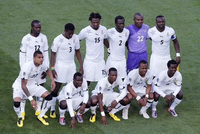 The Ghana team poses before their 2010 World Cup Group D soccer match against Serbia at Loftus Versfeld stadium in Pretoria June 13, 2010. REUTERS/Marcos Brindicci (SOUTH AFRICA - Tags: SPORT SOCCER WORLD CUP)