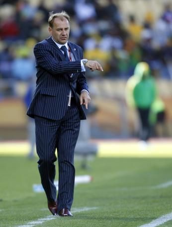 Slovakia head coach Vladimir Weiss gestures during the World Cup group F soccer match between New Zealand and Slovakia at Royal Bafokeng Stadium in Rustenburg, South Africa, on Tuesday, June 15, 2010. (AP Photo/Luca Bruno)