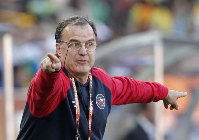 Chile's coach Marcelo Bielsa gestures during a 2010 World Cup Group H match against Honduras at Mbombela stadium in Nelspruit June 16, 2010. REUTERS/Adnan Abidi (SOUTH AFRICA - Tags: SPORT SOCCER WORLD CUP)