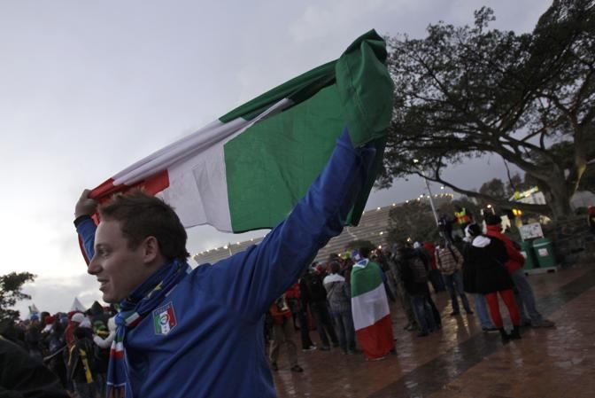 Supporters wait in front of Green Point stadium in Cape Town, South Africa, Monday, June 14, 2010 prior to the start of the group F World Cup soccer match between Italy and Paraguay. (AP Photo/Alessandra Tarantino)