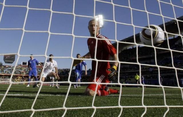 Slovakia goalkeeper Jan Mucha looks at the ball going into the net after New Zealand's Winston Reid, second from left, scored during the World Cup group F soccer match between New Zealand and Slovakia at Royal Bafokeng Stadium in Rustenburg, South Africa, on Tuesday, June 15, 2010. The match ended in a 1-1 draw. (AP Photo/Lee Jin-man)