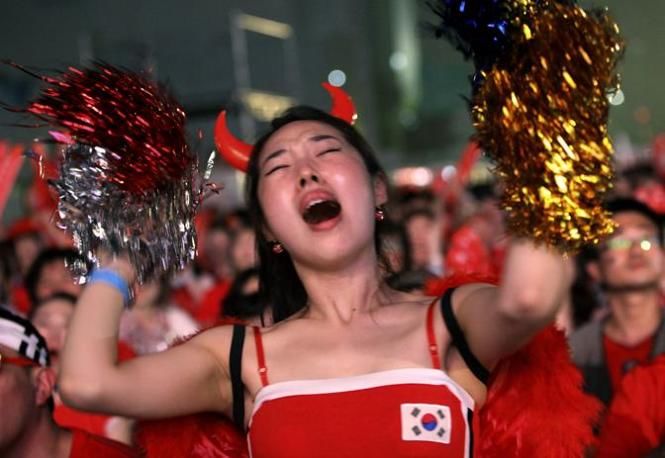 A South Korean soccer fan in Seoul, South Korea, reacts after Argentina scored their third goal against South Korea during their 2010 FIFA World Cup Group B game taking place at Soccer City in Johannesburg, South Africa, Thursday, June 17, 2010. Argentina defeated South Korea 4-1. (AP Photo/Ahn Young-joon)