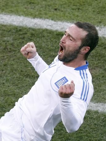 Greece's Dimitris Salpigidis celebrates his goal during the 2010 World Cup Group B soccer match against Nigeria at Free State stadium in Bloemfontein June 17, 2010. REUTERS/Kim Kyung-Hoon (SOUTH AFRICA - Tags: SPORT SOCCER WORLD CUP)