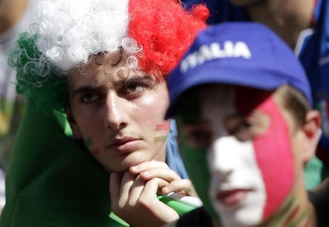 Italian soccer fans react after Slovakia's Robert Vittek scored as they watch on a giant screen the group F World Cup soccer match between Italy and Slovakia, in Rome, Thursday, June 24, 2010. (AP Photo/Andrew Medichini)