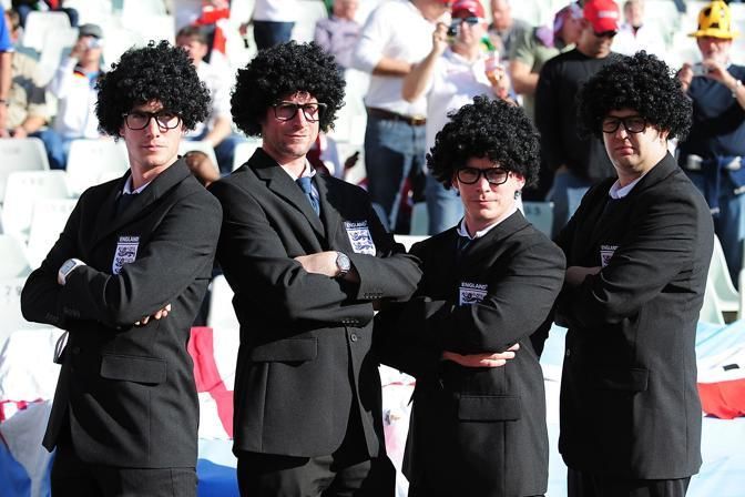 Fans get in the mood before the 2010 World Cup Soccer match between England and Germany in a group 16 match played at the Freestate Stadium in Bloemfontein South Africa on 27 June 2010.