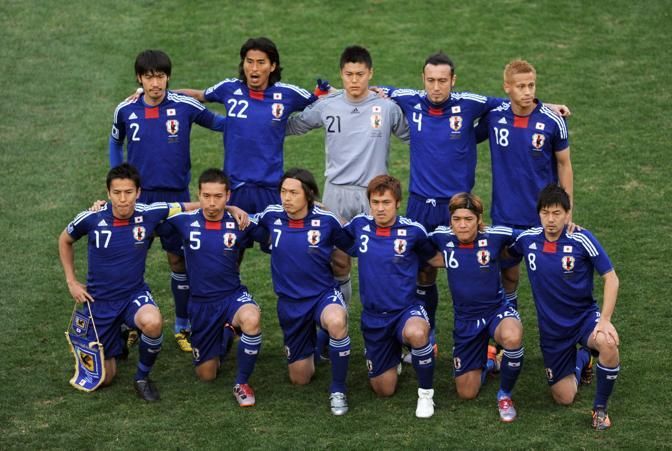 epa02229416 Japanese national players (back row L-R) Yuki Abe, Yuji Nakazawa, Eiji Kawashima, Markus Tulio Tanaka, Keisuke Honda; (front row L-R) Makoto Hasebe, Yuto Nagatomo, Yasuhito Endo, Yuichi Komano, Yoshito Okubo, Daisuke Matsui pose for photographers prior the FIFA World Cup 2010 Round of 16 match between Paraguay and Japan at the Loftus Versfeld stadium in Pretoria, South Africa, 29 June 2010. EPA/SHAWN THEW Please refer to www.epa.eu/downloads/FIFA-WorldCup2010-Terms-and-Conditions.pdf