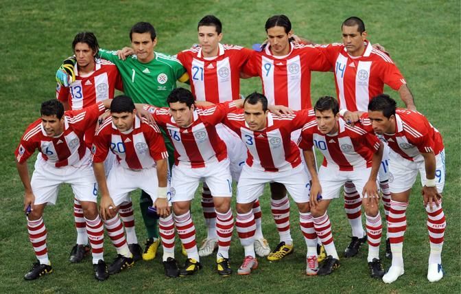 epa02229429 Paraguay's national soccer team player (top row, L-R) Enrique Vera, goalkeeper Justo Villar, Antolin Alcaraz, Roque Santa Cruz, Paulo da Silva, (front row, L-R) Carlos Bonet, Nestor Ortigoza, Cristian Riveros, CLaudio Morel, Edgar Benitez, Lucas Barrions, pose prior the FIFA World Cup 2010 Round of 16 match between Paraguay and Japan at the Loftus Versfeld stadium in Pretoria, South Africa, 29 June 2010. EPA/SHAWN THEW Please refer to www.epa.eu/downloads/FIFA-WorldCup2010-Terms-and-Conditions.pdf