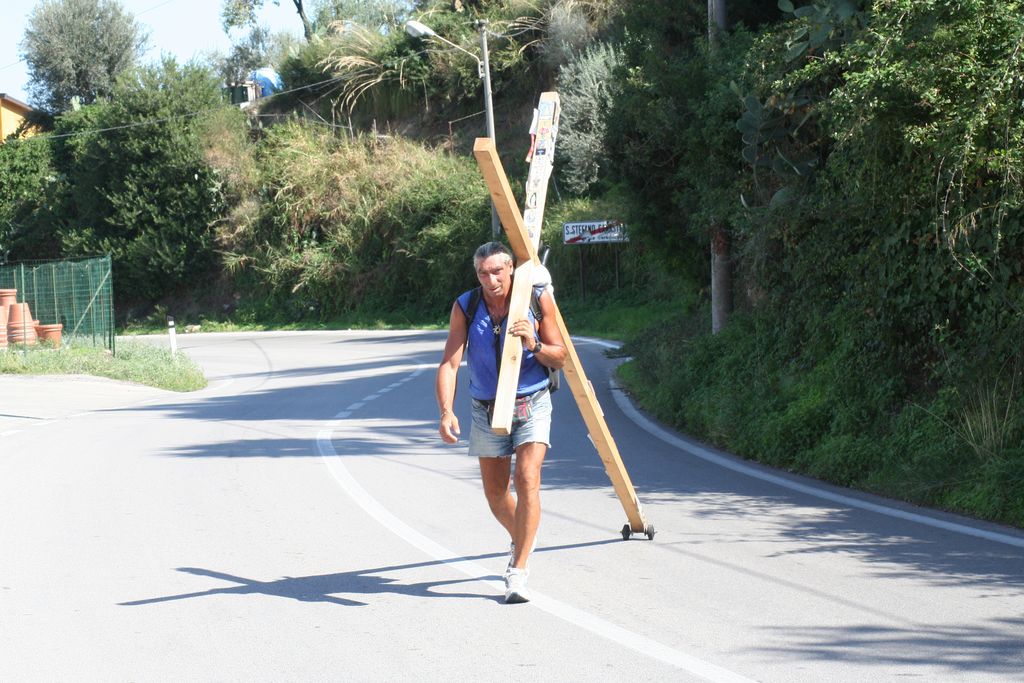 UOMO CON LA CROCE Salvatore Glorioso a Piedi da Milano a Gibilmanna Partito Mese di LUGLIO