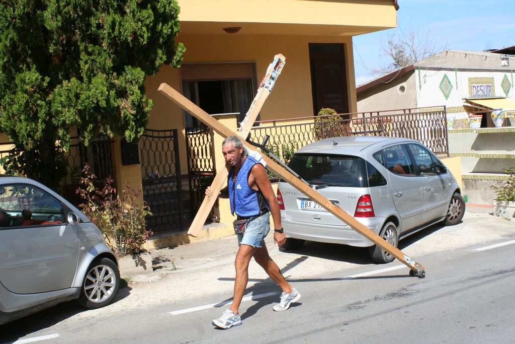 UOMO CON LA CROCE Salvatore Glorioso a Piedi da Milano a Gibilmanna Partito Mese di LUGLIO