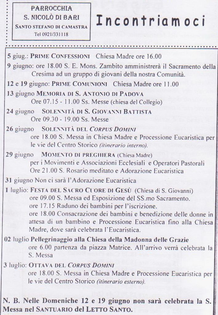 EVENTI RELIGIOSI